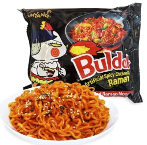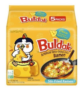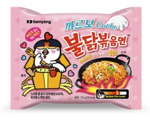 Buldak noodle, a product of Samyang Foods, is a type of ramen that combines chewy and thick noodles with a spicy sauce. The name “Buldak(불닭)” translates to “Buldak,” and “볶음면” means “stir-fried noodles” Unlike common ramen soups, Buldak noodle is boiled and drained, and then mixed with the sauce to create a dry and intensely flavored noodle dish.